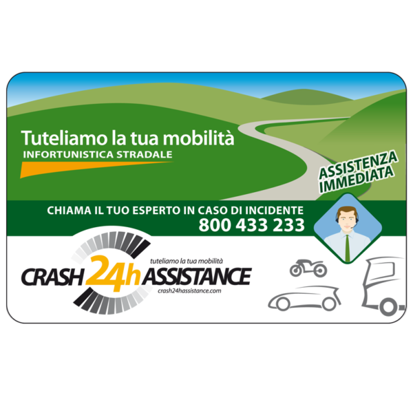 Crash 24h Assistance è un servizio integrativo per singolo veicolo con 3 anni di assistenza 24 ore al giorno tutti i giorni. Con la CARD CRASH24HASSISTANCE di MARIBELLO GROUP potrete contare sul supporto tecnico di un team di professionisti nel settore dei danni stradali.
